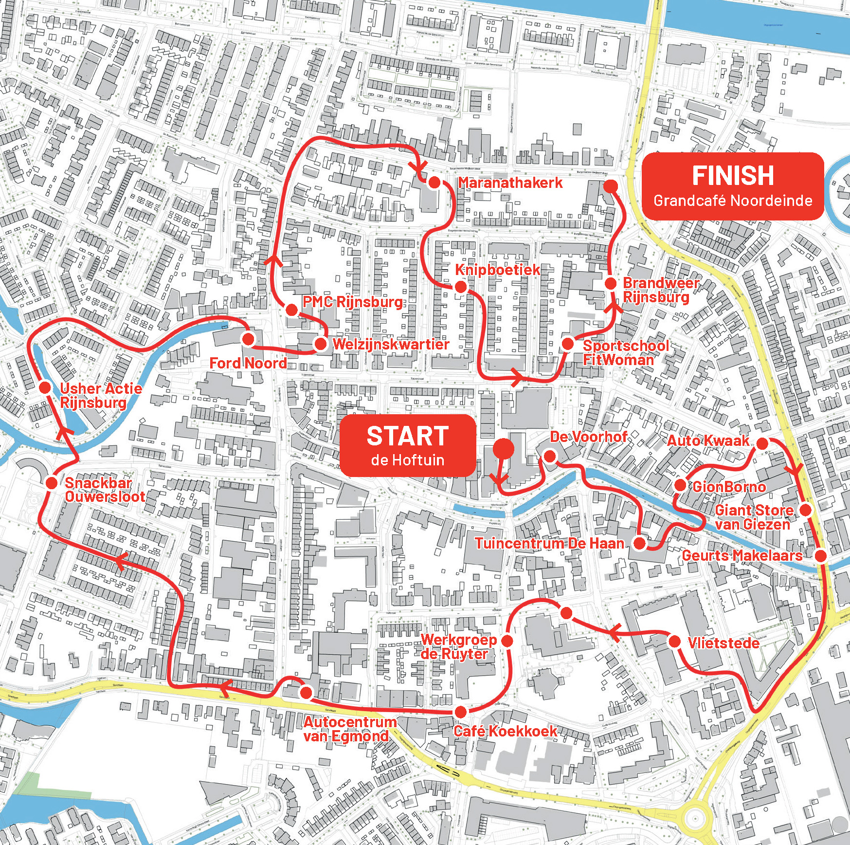 De start van de Santa Walk is in Winkelcentrum De Hoftuin waar vanaf 17:00u activiteiten zijn en de kerstmannenpakken afgehaald kunnen worden. Vanuit daar word je het centrum door geleid, middels verlichte routebordjes en onze wegwijzers. Op onderstaande kaart kun je de volledige route zien. π π»